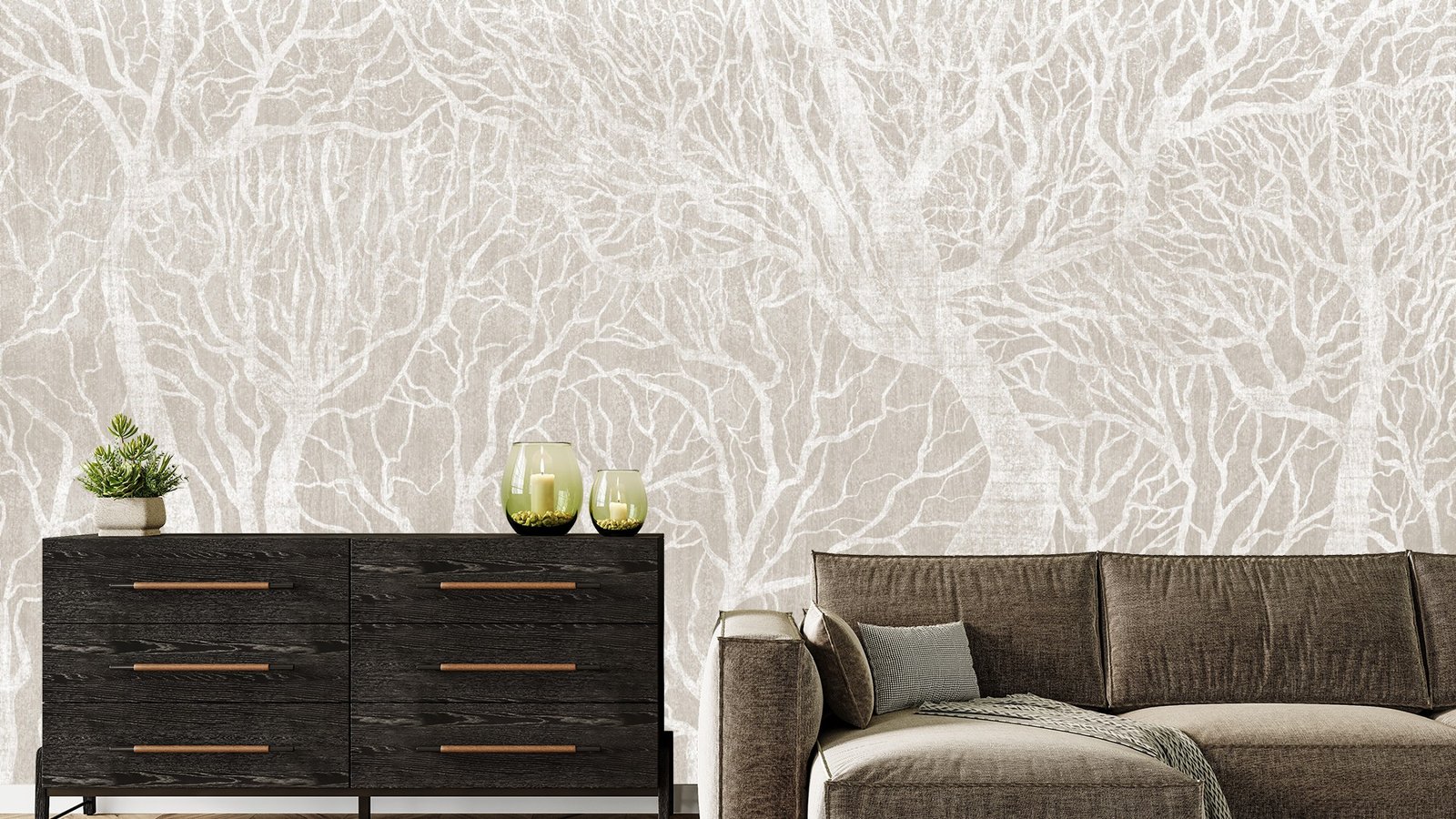 Le papier peint Frozen Canopy 2 arbore une teinte brune apaisante, idéale pour créer une ambiance intimiste et élégante dans n’importe quelle pièce. Inspiré par la nature, son design apporte une touche organique et contemporaine à votre intérieur, tout en restant sobre et intemporel.